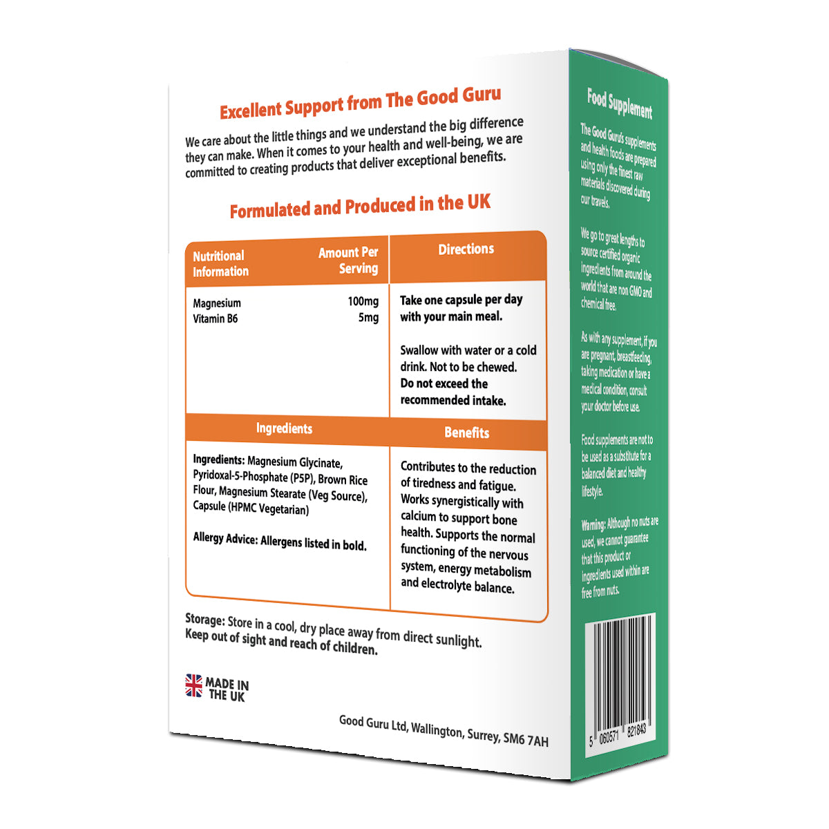 The Good Guru Vegan Magnesium Glycinate, combined with Vitamin B6, provides a multitude of support.
